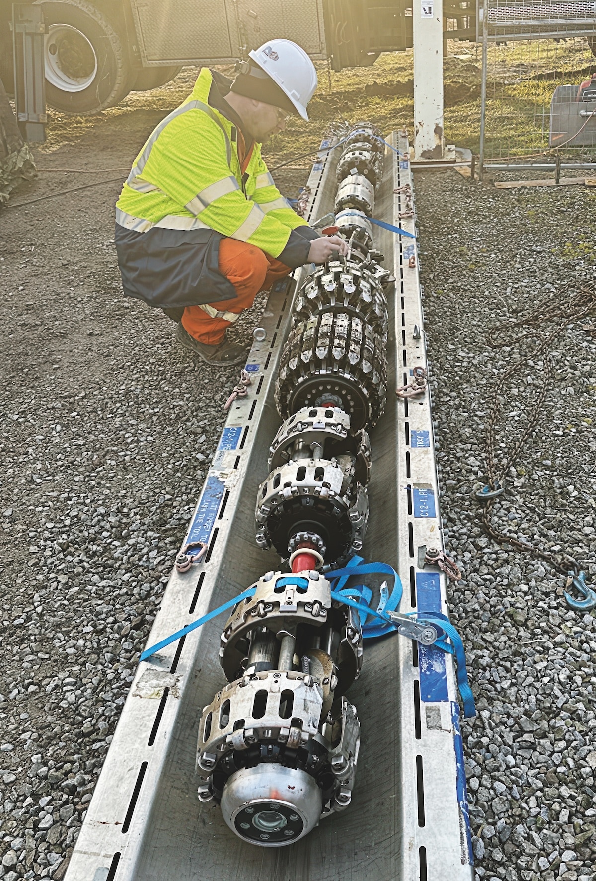 To validate the tool’s readiness, an extensive testing regime was conducted. This included passage, friction, and pull tests to confirm mechanical reliability and measurement accuracy under realistic pipeline conditions. A purpose-built passage loop replicated the pipelines’ most restrictive features, through which the crawler navigated smoothly in all orientations. Friction testing confirmed stable operation on varied elevation profiles.