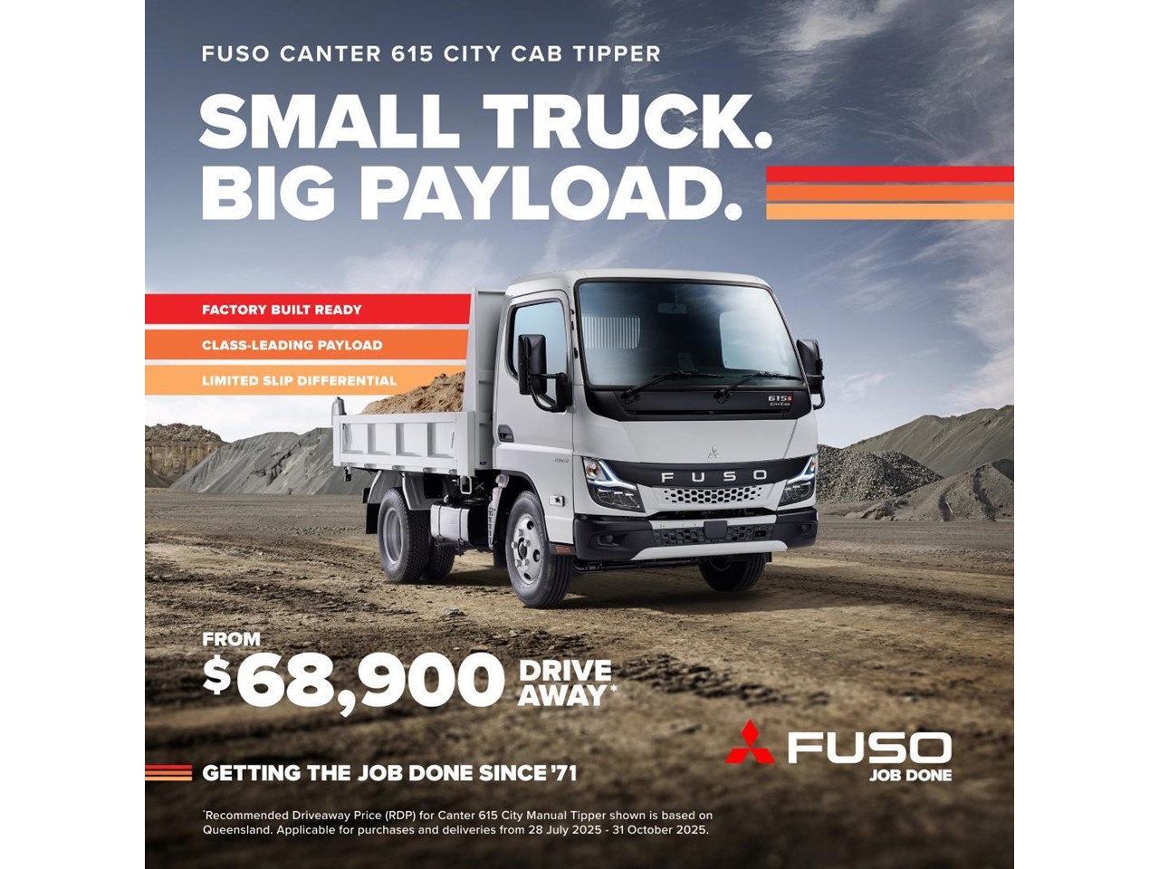 2025 Fuso Canter 615 Tipper - Manual - $68,900 DRIVE AWAY
