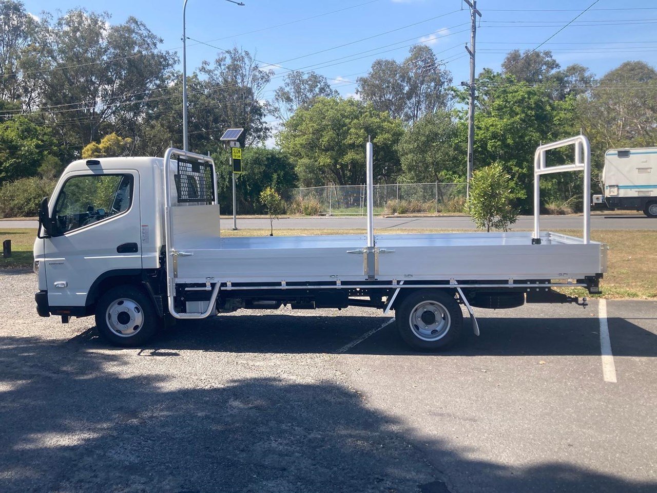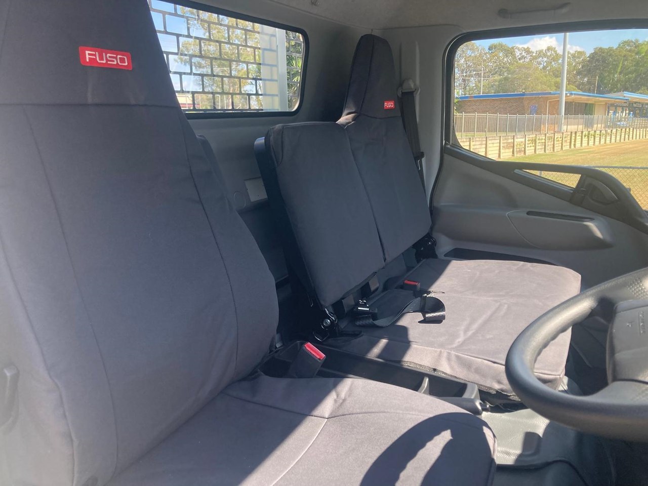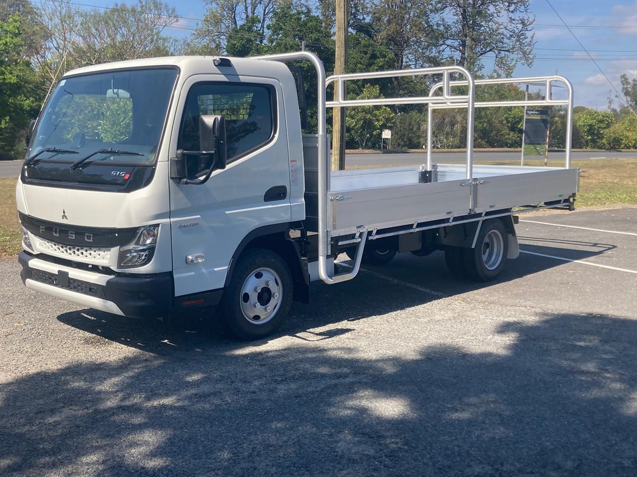 2025 CANTER 515 WIDE CAB 4X2 MWB 6SP. DUONIC TRANSMISSION FITTED WITH 4500mm X 2100mm X 300mm (H) SPLIT DROPSIDES, CENTRE & REAR REMOVABLE LADDER RACKS AND 3.5T RATED TOWBAR WITH 50mm BALL, CANVAS SEAT COVERS, RUBBER FLOOR MATS.