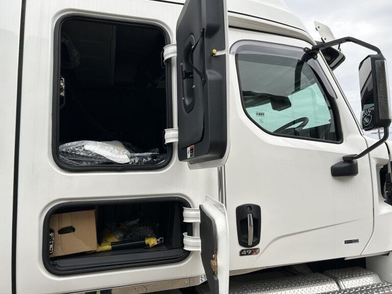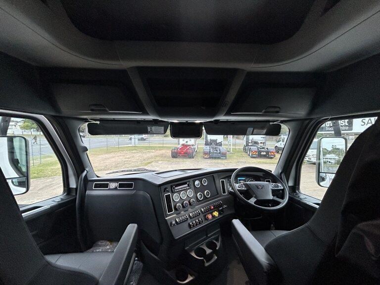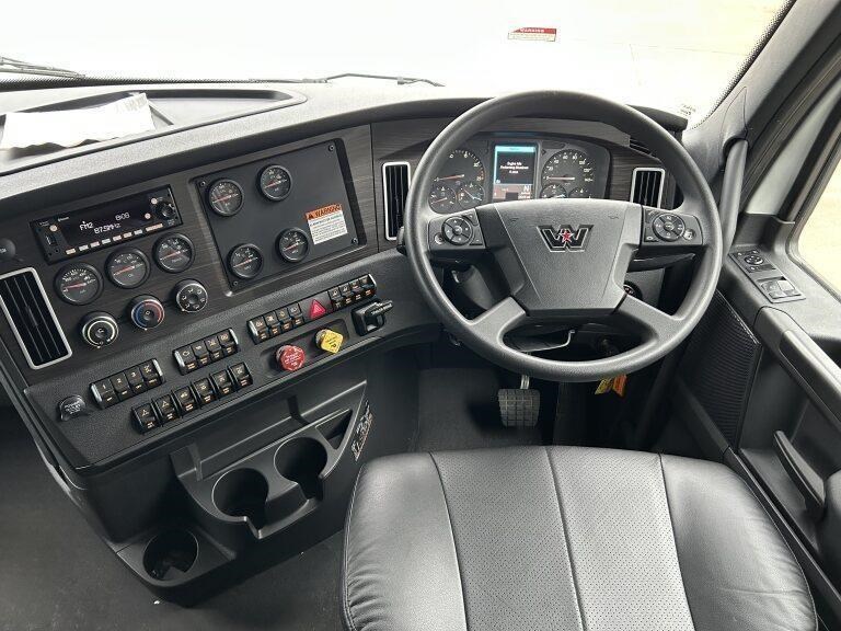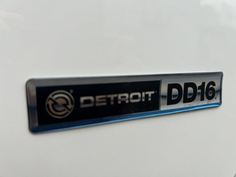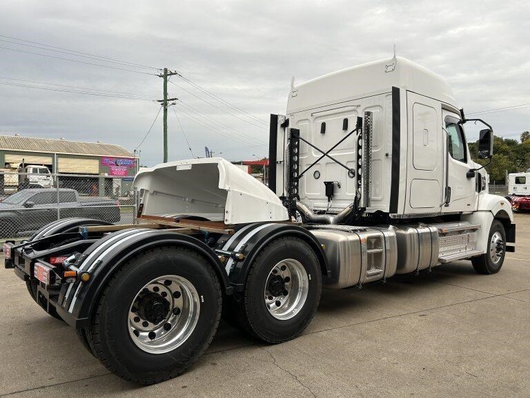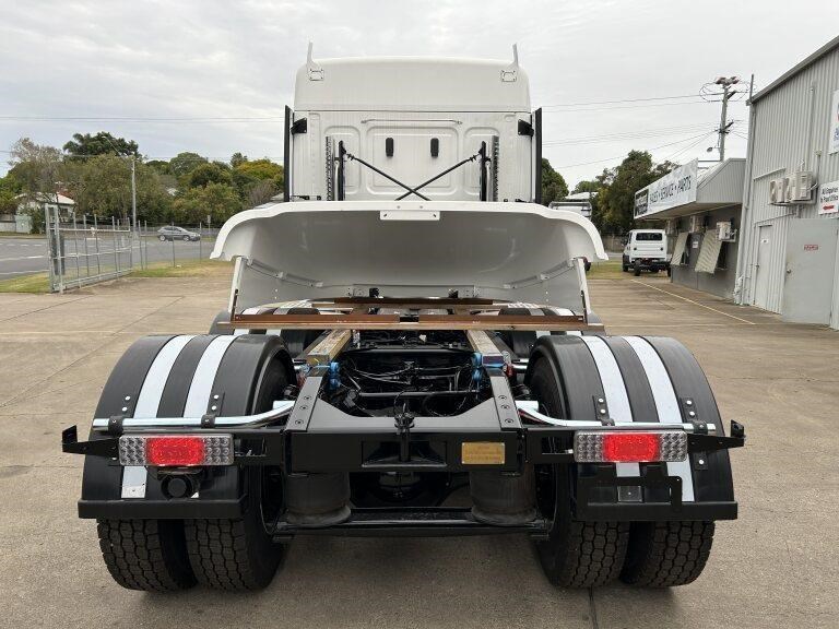 49X long bonnet with 48" mid roof sleeper, Detroit DD16 600hp @ 2050lb/ft, 12 speed automated transmission, Meritor RT46-160GP diffs , 1820lts fuel, Jost fixed turntable, alloy walk plate, Plastic drive guards and UHF radio